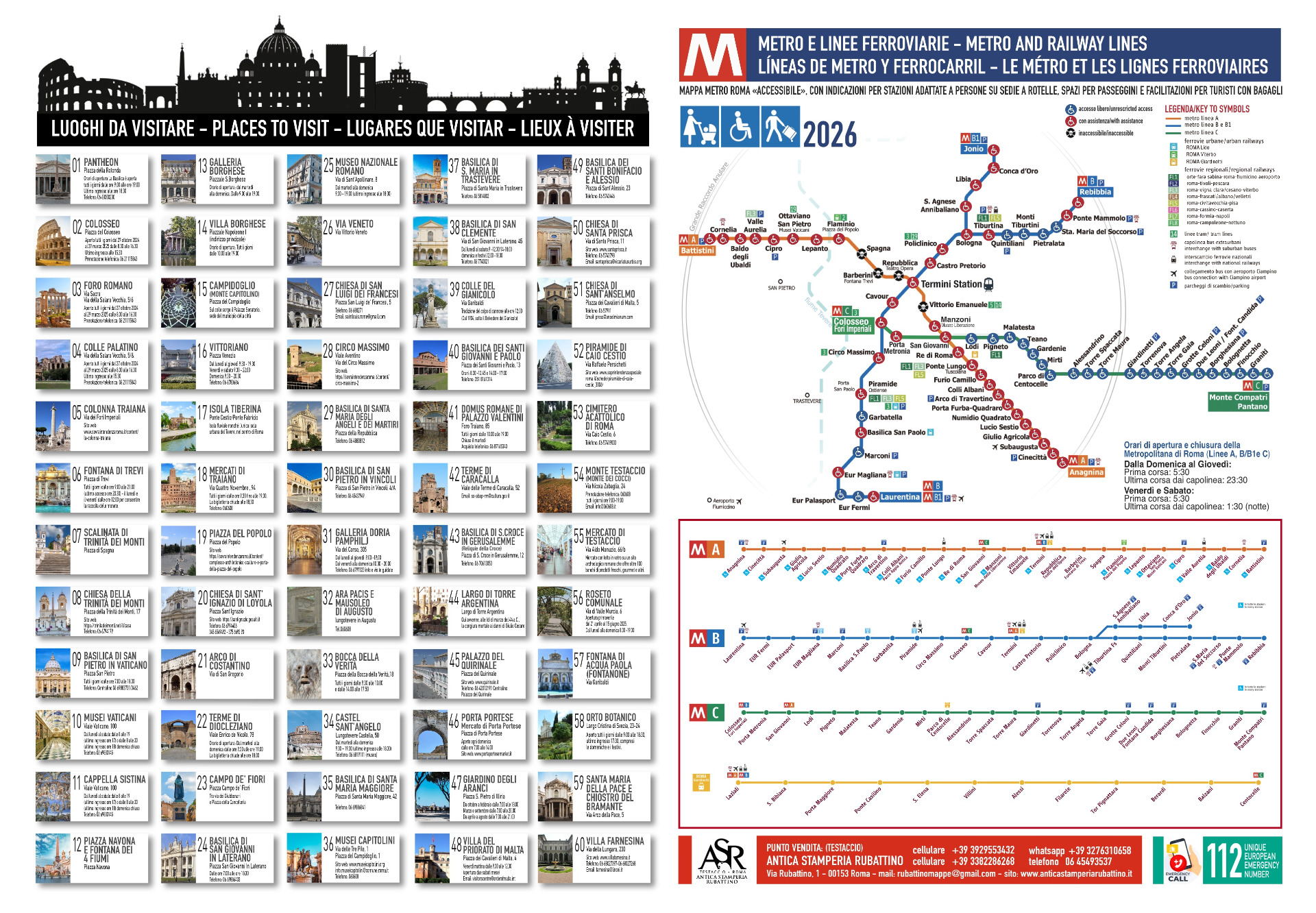 Da oggi con un retro graficamente nuovo e più chiaro e con la MAPPA della METRO di ROMA «ACCESSIBILE», CON INDICAZIONI PER STAZIONI ADATTATE A PERSONE SU SEDIE A ROTELLE, SPAZI PER PASSEGGINI E FACILITAZIONI PER TURISTI CON BAGAGLI E CON INDICAZIONI DEI PRINCIPALI MONUMENTI!